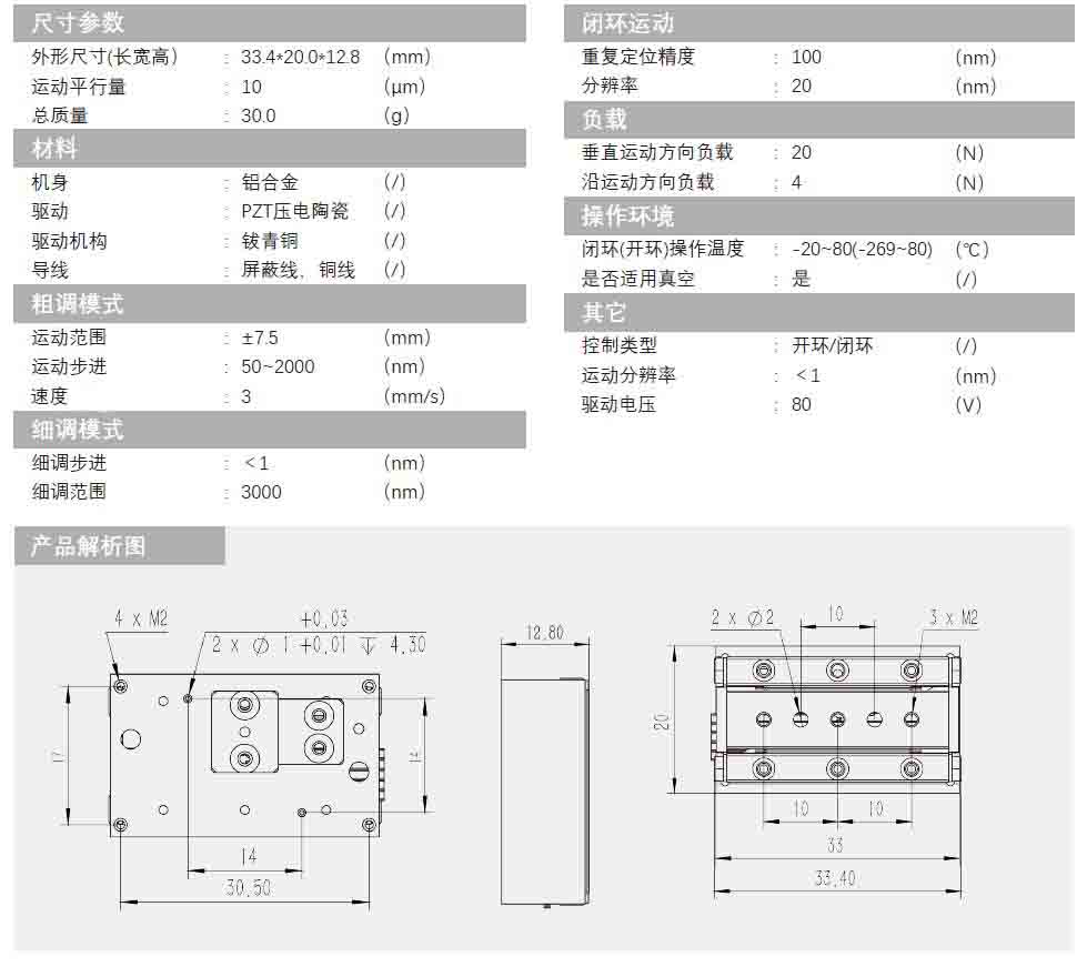 線性壓電位移臺(tái)-MF系列 MF30-20A
